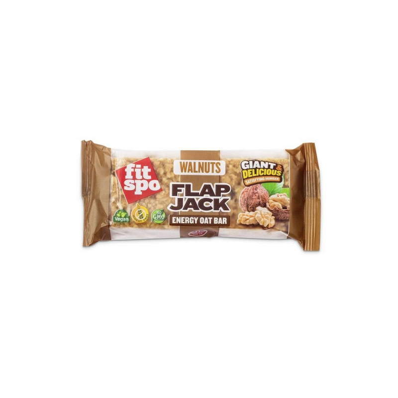 „FitSpo Flapjack Walnuts 90 g“ – sotus ir maistingas energijos batonėlis iš avižinių dribsnių su riešutais. Subalansuotas angliavandenių, riebalų ir skaidulų kiekis suteikia ilgalaikę energiją, palaiko sotumo jausmą ir puikiai tinka aktyviems žmonėms ar kaip skanus užkandis bet kuriuo dienos metu