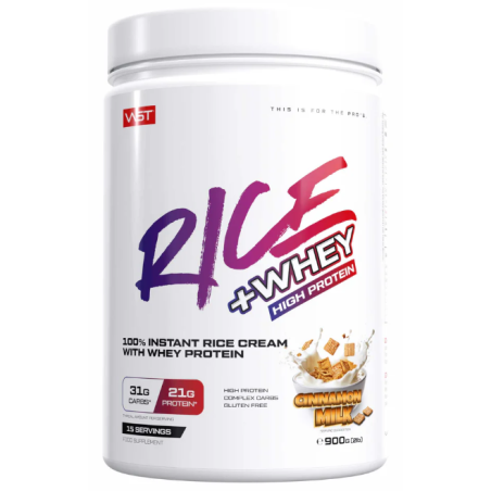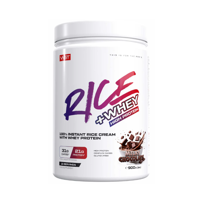 VAST Rice + Whey 900 g – tai aukštos kokybės baltymų mišinys, jungiantis lengvai virškinamus ryžių baltymus - CREAM OF RICE - ir greitai pasisavinamus išrūgų baltymus WHEY. Ši formulė padeda palaikyti raumenų augimą, atstatyti energiją po fizinio krūvio ir suteikti ilgalaikį sotumo pojūtį. Puikus pasirinkimas sportuojantiems ir aktyviai gyvenantiems