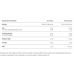 Barebells Protein Bar Peanut Cloud – tai skanus ir maistingas proteino batonėlis, kuris turi traškų žemės riešutų ir karamelės pagrindą, užpildytą minkštu ir itin puriu zefyro sluoksniu, kuris užbaigtas šilkine pieniško šokolado danga. Šis batonėlis yra puikus užkandis, kuriame gausu baltymų, todėl jis tinka tiek sportuojantiems, tiek norintiems sveikai maitintis. Su mažai cukraus ir subalansuota mitybos sudėtimi, jis yra idealus pasirinkimas po treniruotės arba kaip užkandis bet kuriuo metu.