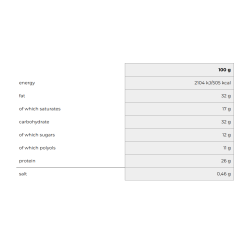 • Su baltymais ir angliavandeniais — idealu kaip greitas, sotinantis užkandis po treniruotės ar tarp darbų.