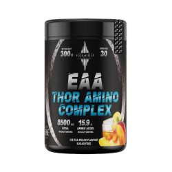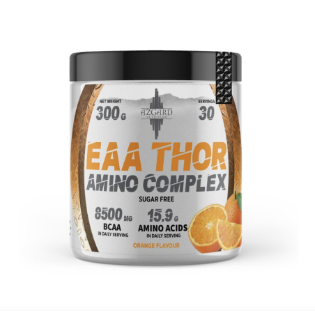 Azgard EAA Thor Amino Complex – tai aukštos kokybės esminių amino rūgščių (EAA) kompleksas, sukurtas raumenų atkūrimui, ištvermei ir raumenų augimui skatinti. Kiekvienoje porcijoje (10 g) yra optimali esminių amino rūgščių pusiausvyra, kuri padeda užtikrinti greitą raumenų atsigavimą po intensyvių treniruočių ir gerina raumenų sintezę.