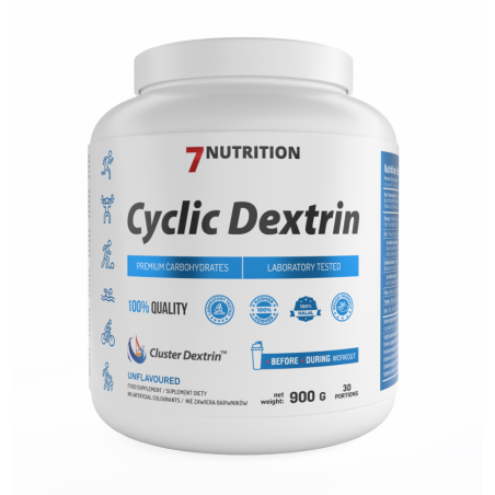 7 Nutrition Cyclic Dextrin – tai aukštos kokybės ciklinis dekstrinas, kuris yra efektyvus angliavandenių papildas, skirtas sportininkams, norintiems greitai papildyti energijos atsargas ir palaikyti aukštą fizinį našumą treniruočių metu. Ciklinis dekstrinas yra angliavandenis, turintis labai greitą pasisavinimo greitį, todėl jis puikiai tinka naudoti prieš treniruotę ir po treniruotės.