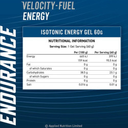 Applied Nutrition Endurance Energy Isotonic Energy Gel – tai energijos gelis, sukurtas sportininkams ir aktyviems žmonėms, siekiantiems išlaikyti aukštą energijos lygį ilgesnių treniruočių ir varžybų metu. Šis gelis suteikia greitą ir ilgesnį energijos šaltinį, kuris padeda išvengti nuovargio ir pagerina fizinį našumą