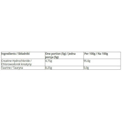 Sudedamosios dalys: kreatino hidrochloridas (HCl), taurinas.