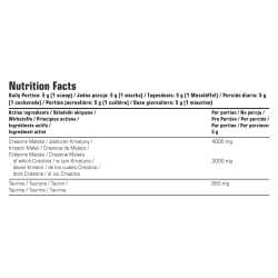 Sudedamosios dalys: kreatino malatas (92 %); taurinas; lipnumą reguliuojanti medžiaga: silicio dioksidas.