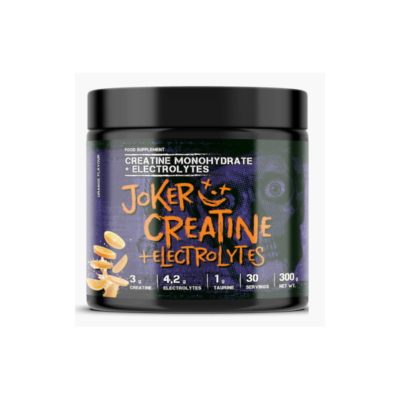 JOKER Creatine + Electrolytes – tai pažangus maisto papildas, sukurtas sportuojantiems ir fiziškai aktyviems žmonėms. Ši formulė sujungia kreatino monohidratą su elektrolitais, padedančiais palaikyti optimalią raumenų veiklą, hidrataciją ir energijos balansą treniruočių metu. Puikus pasirinkimas siekiant didesnės jėgos, raumenų tūrio bei greitesnio atsistatymo po krūvio.