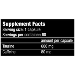 Sudedamosios dalys: Taurinas 70,7%, kapsulės apvalkalas [želatina, glazūravimo priemonė (šelakas), dažiklis (geležies oksidai ir hidroksidai), rūgštingumą reguliuojanti medžiaga (amonio hidroksidas), rūgštingumo reguliatorius (kalio hidroksidas)], kofeinas 9,4%, maltodekstrinas.