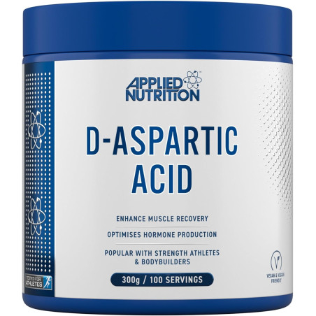 Applied Nutrition D-Aspartic Acid 3000 mg 300 g – specialiai subalansuotas papildas su aukšta D-aspartinės rūgšties (DAA) koncentracija – 3000 mg vienoje porcijoje. DAA organizme dalyvauja hormonų reguliacijoje, ypač skatina luteinizuojančio hormono (LH) ir testosterono gamybą.