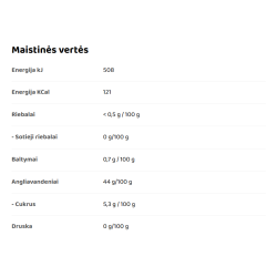 • be pridėtinio cukraus – saldumas gaunamas iš maltitolio, todėl tinka mažesnio cukraus ir fit dietoms
