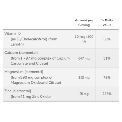 • Kalcis yra pagrindinis mineralas, reikalingas kaulams ir dantims. Jis padeda užtikrinti kaulų tvirtumą ir stiprumą, taip pat svarbus normaliam raumenų veikimui ir nervų funkcijai. Padeda reguliuoti kraujospūdį ir dalyvauja kraujo krešėjimo procese.