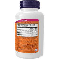 Now Vitamin C-500 Calcium Ascorbate-C – Tai maisto papildas su kalcio askorbatu – tampriai buferizuota, ne rūgšti vitamino C forma, kuri yra švelnesnė skrandžiui. Formulėje taip pat esantis citrusinių vaisių bioflavonoidų kompleksas sinergiškai veikia su vitaminu C, padidinant jo apsauginį poveikį.